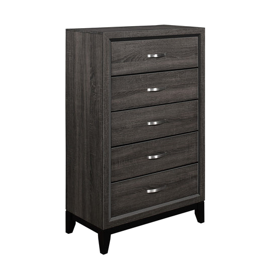 5 Drawer Wooden Chest With Grain Details And Ch... 5 Drawer Wooden Chest With Grain Details And Chamfered Feet, Gray By Benzara