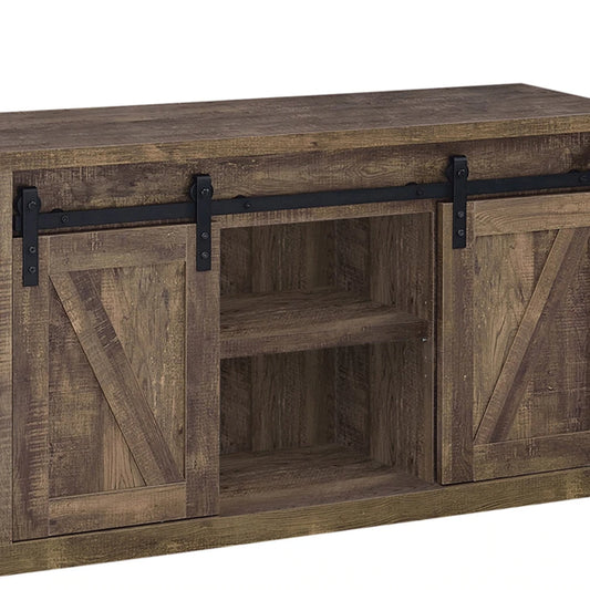 48 Inch Farmhouse Wooden Tv Console With 2 Slid... 48 Inch Farmhouse Wooden Tv Console With 2 Sliding Barn Doors, Rustic Brown By Benzara