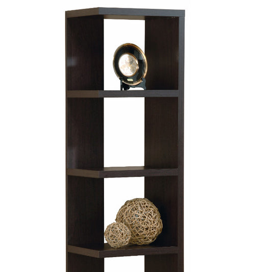 Wooden Media Tower With Four Open Shelves And T... Wooden Media Tower With Four Open Shelves And Two Drawers, Dark Taupe Brown By Benzara