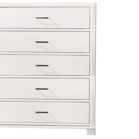 Transitional 5 Drawer Chest With Curved Handle ... Transitional 5 Drawer Chest With Curved Handle And Chamfered Feet, White - Bm215345 By Benzara