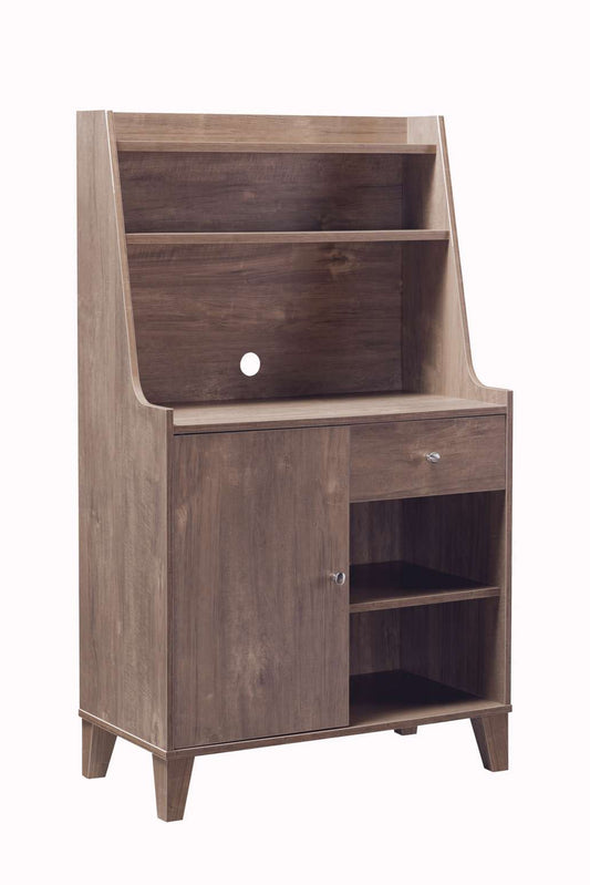 Wooden 1 Door Bakers Cabinet With 2 Top Shelves... Wooden 1 Door Bakers Cabinet With 2 Top Shelves And 1 Drawer, Brown By Benzara