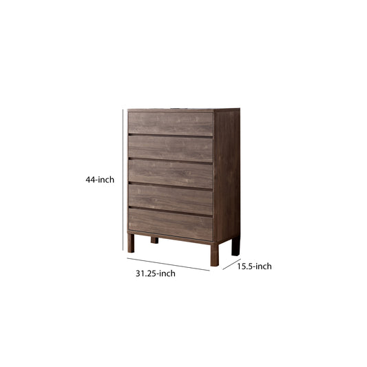 Grained Wooden Frame Chest With 5 Drawers And S... Grained Wooden Frame Chest With 5 Drawers And Straight Legs, Hazelnut Brown By Benzara