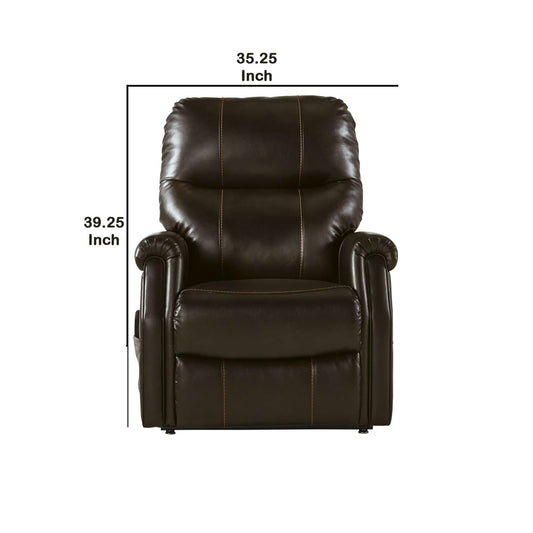 Leatherette Metal Frame Power Lift Recliner Wit... Leatherette Metal Frame Power Lift Recliner With Tufted Back, Brown By Benzara