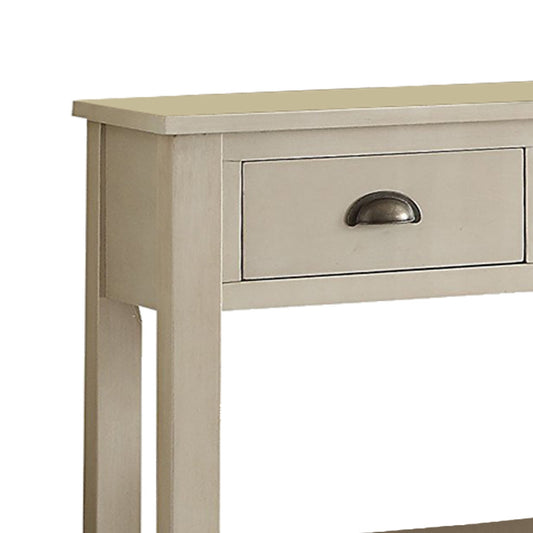 Spacious Wooden Sofa Table With Carved Turned L... Spacious Wooden Sofa Table With Carved Turned Legs, Antique White By Benzara