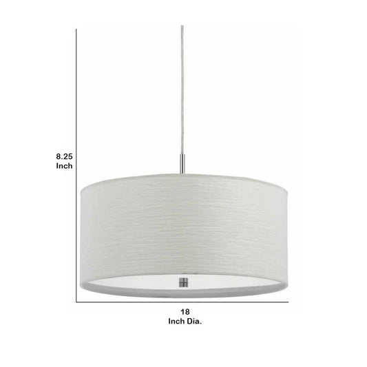 Drum Style Pendant Fixture with Fabric Shade an... Drum Style Pendant Fixture with Fabric Shade and Brushed Details, White By Benzara