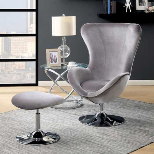 Eccentric Contemporary Flannelette Fabric Accen... Eccentric Contemporary Flannelette Fabric Accent Chair With Ottoman, Gray By Benzara