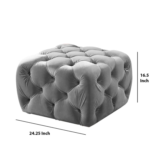 Button Tufted Velvet Fabric Upholstered Wooden ... Button Tufted Velvet Fabric Upholstered Wooden Ottoman, Gray By Benzara