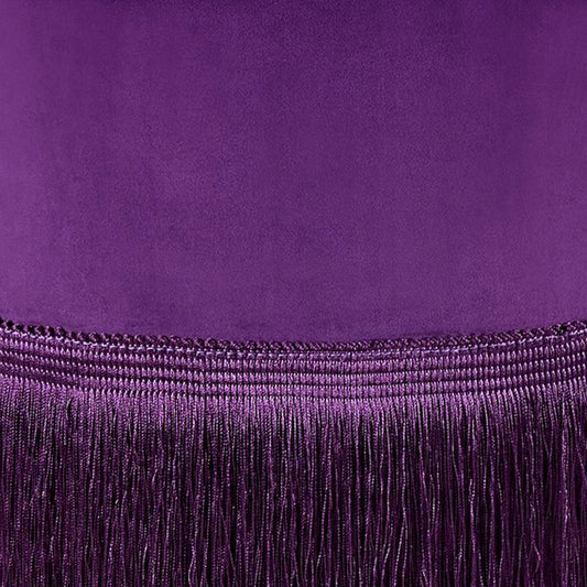 Fabric Upholstered Round Ottoman With Fringes A... Fabric Upholstered Round Ottoman With Fringes And Metal Base, Purple By Benzara