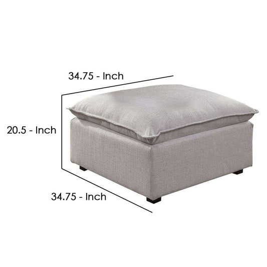 Fabric Upholstered Ottoman With Pillow Top Seat... Fabric Upholstered Ottoman With Pillow Top Seat And Welt Trim, Gray By Benzara