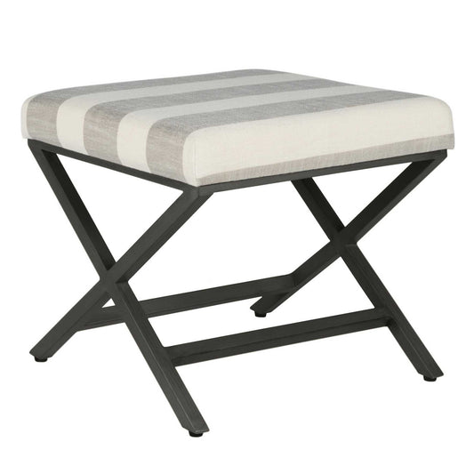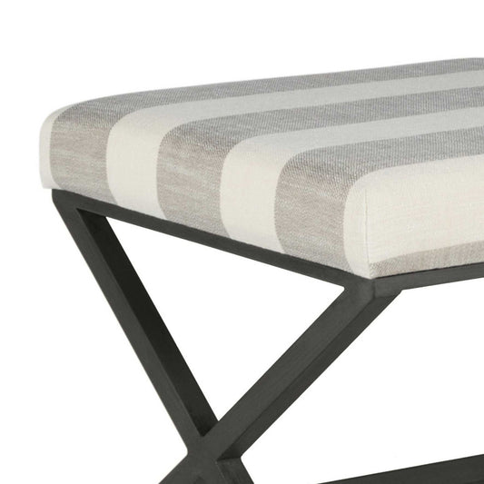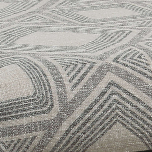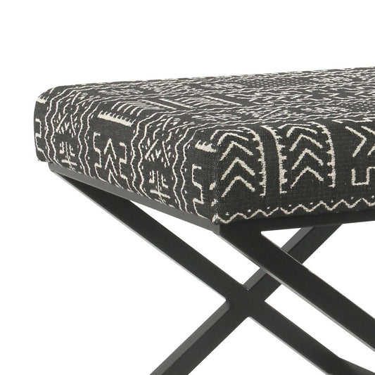 Geometric Pattern Fabric Upholstered Ottoman Wi... Geometric Pattern Fabric Upholstered Ottoman With X Shape Metal Legs, Gray And Cream By Benzara