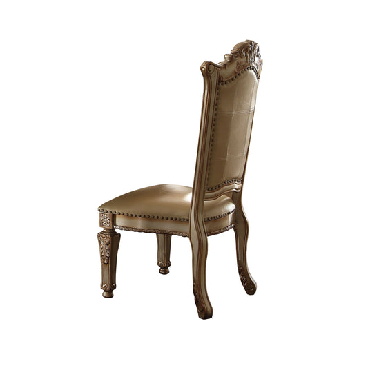 Button Tufted Side Chair With Carved Motifs, Se... Button Tufted Side Chair With Carved Motifs, Set Of 2, Gold By Benzara