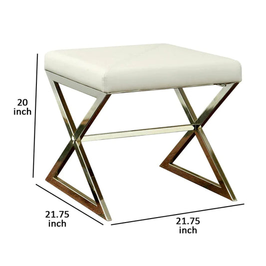 Contemporary Upholstered Stool Metal Base, Whit... Contemporary Upholstered Stool Metal Base, White By Benzara