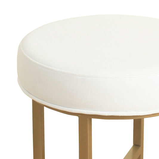 Round Shape Metal Framed Stool With Velvet Upho... Round Shape Metal Framed Stool With Velvet Upholstered Seat, White And Gold By Benzara