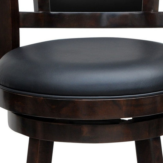 24 Inches Swivel Wooden Frame Counter Stool Wit... 24 Inches Swivel Wooden Frame Counter Stool With Padded Back Dark Brown By Benzara