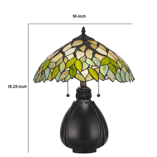 2 Bulb Tiffany Table Lamp With Leaf Design Glas... 2 Bulb Tiffany Table Lamp With Leaf Design Glass Shade, Multicolor By Benzara