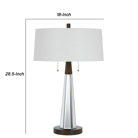 Fabric Shade Table Lamp With Faceted Mirror And... Fabric Shade Table Lamp With Faceted Mirror And Wooden Base, White By Benzara