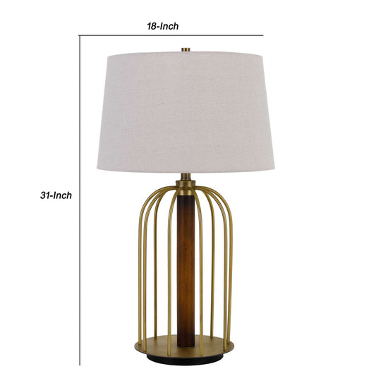 Metal Table Lamp With Cage Design Support With ... Metal Table Lamp With Cage Design Support With Round Base, White And Brass By Benzara
