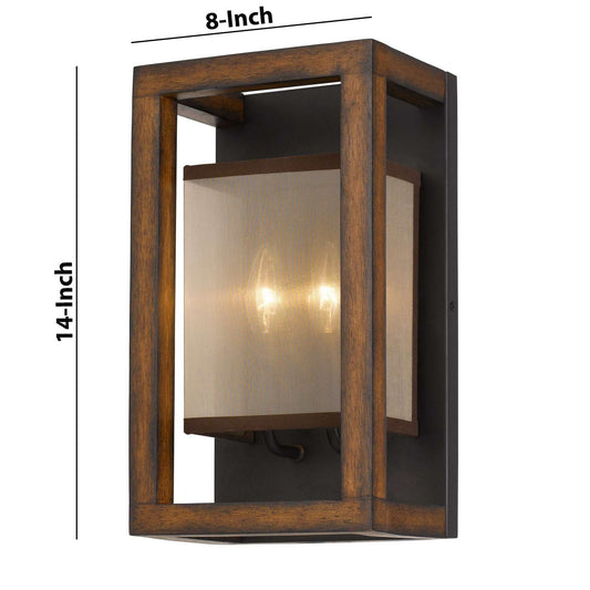 40 X 2 Watt Wooden Wall Sconce With Organza Sha... 40 X 2 Watt Wooden Wall Sconce With Organza Shade, Walnut Brown By Benzara