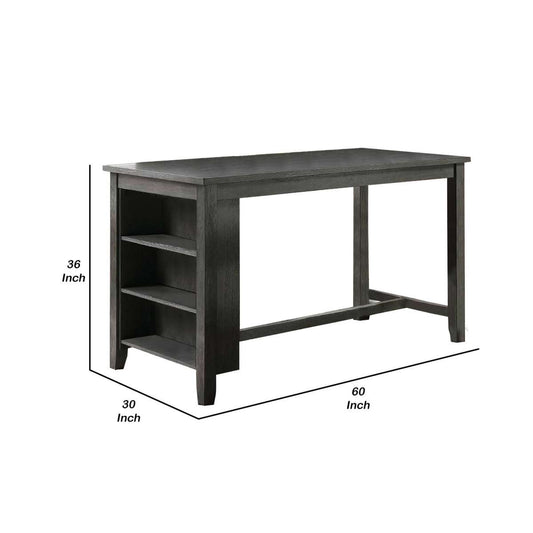 Wooden Counter Height Table With Three Storage ... Wooden Counter Height Table With Three Storage Shelves, Gray By Benzara