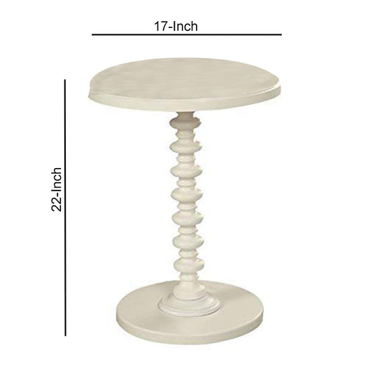 22 Inch Round Wooden Side Table With Turned Bas... 22 Inch Round Wooden Side Table With Turned Base, White By Benzara
