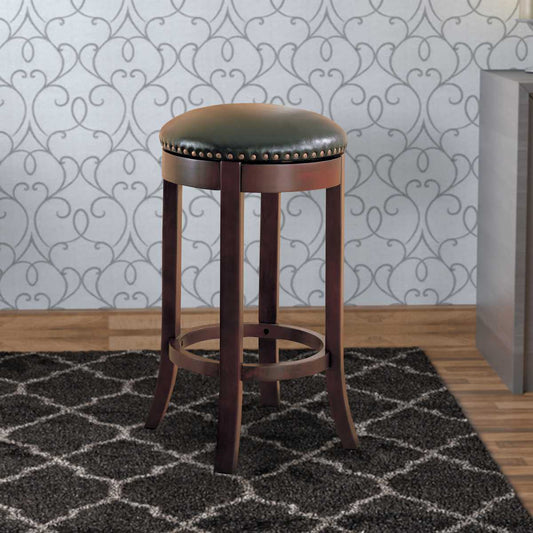 Open Wooden Back Faux Leather Barstool With Ped... Open Wooden Back Faux Leather Barstool With Pedestal Base Black And Brown By Benzara