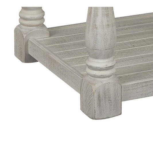 Plank Style End Table With Turned Legs And Open... Plank Style End Table With Turned Legs And Open Shelf, White And Gray By Benzara