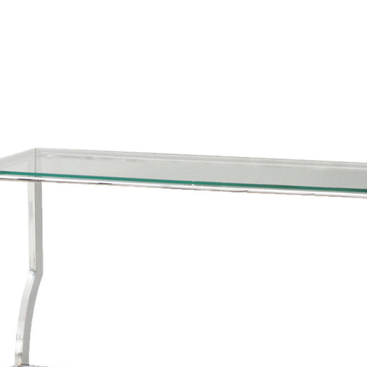 Glass Top Sofa Table With Metal Frame And Mirro... Glass Top Sofa Table With Metal Frame And Mirror Shelf, Chrome By Benzara