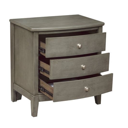 Wooden Nightstand With 3 Spacious Drawers And K... Wooden Nightstand With 3 Spacious Drawers And Knobs, Gray By Benzara