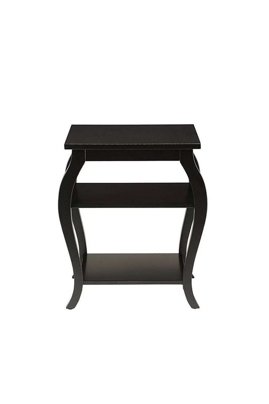 Wooden End Table With 2 Open Shelves And Cabrio... Wooden End Table With 2 Open Shelves And Cabriole Legs, Black By Benzara