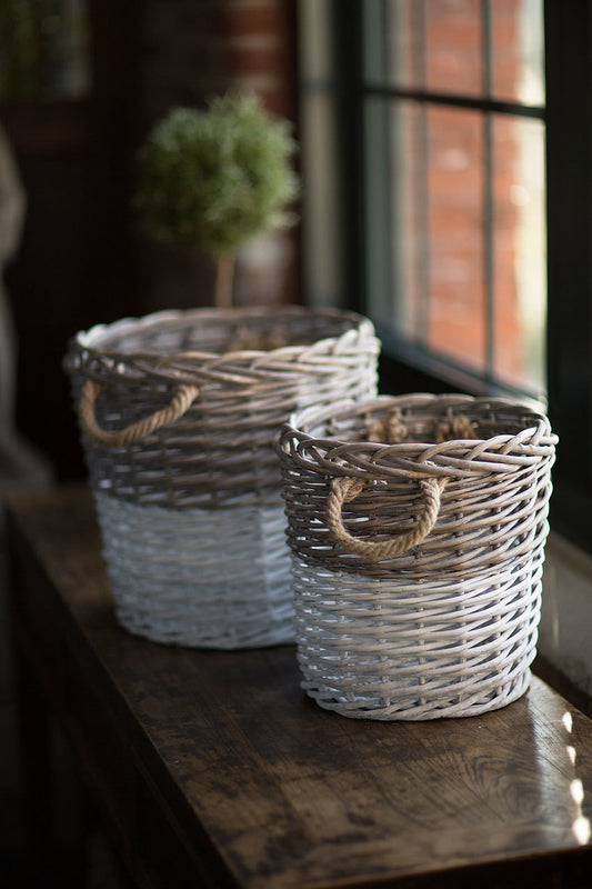 Vagabond Vintage Round Willow Baskets Dipped Wh... Vagabond Vintage Round Willow Baskets Dipped White - Set of 2
