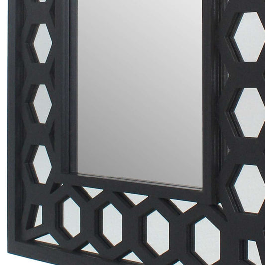 Rectangular Wooden Dressing Mirror With Lattice... Rectangular Wooden Dressing Mirror With Lattice Pattern Design, Black By Benzara