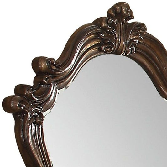 Arched Molded Design Wooden Frame Mirror, Cherr... Arched Molded Design Wooden Frame Mirror, Cherry Brown And Silver By Benzara