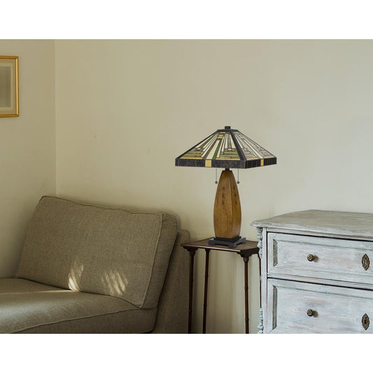 60W X 2 Tiffany Table Lamp With Pull Chain Swit... 60W X 2 Tiffany Table Lamp With Pull Chain Switch W/ Resin Lamp Body By Cal Lighting