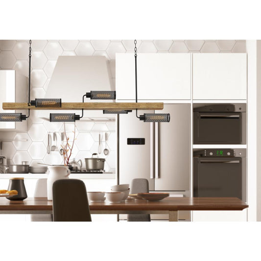 60W X 6 Lenox Pine Wood Island Chandelier With ... 60W X 6 Lenox Pine Wood Island Chandelier With Metal Mesh Shades By Cal Lighting