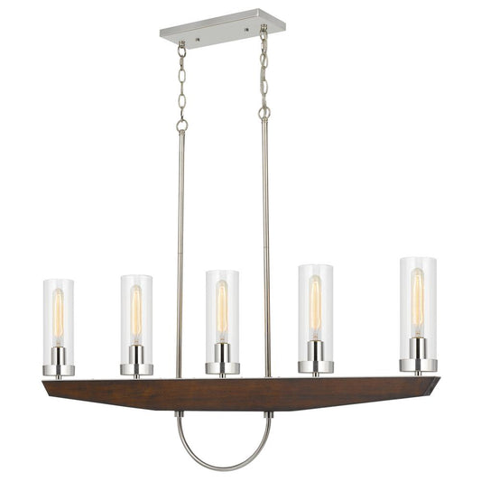 60W X 5 Ercolano Pine Wood/Metal Island Chandel... 60W X 5 Ercolano Pine Wood/Metal Island Chandelier With Clear Glass Shade (Edison Bulbs Not Included), Wood/Brushed Steel By Cal Lighting