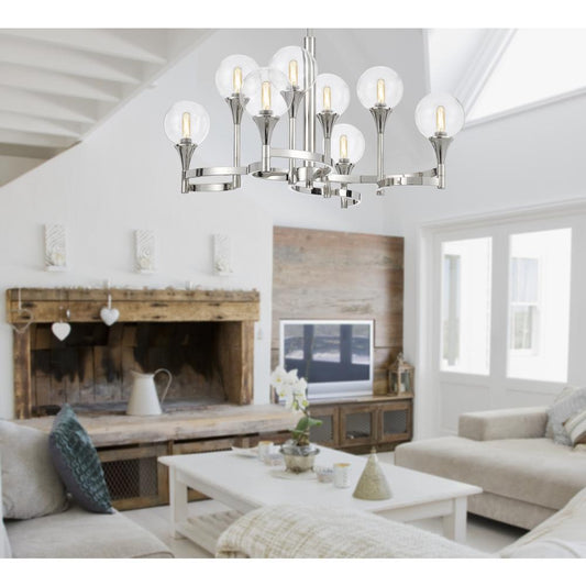 15W X 8 Milbank Metal Chandelier And Clear Roun... 15W X 8 Milbank Metal Chandelier And Clear Round Glass Shades By Cal Lighting