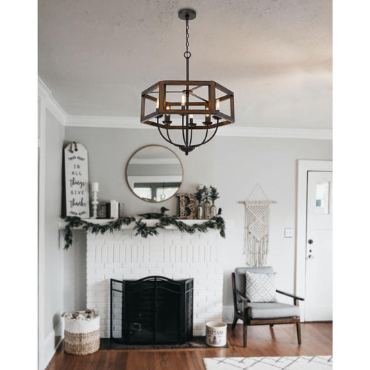 Marion Metal/Wood Mesh Shade Chandelier (Edison... Marion Metal/Wood Mesh Shade Chandelier (Edison Bulbs Not Included), Fx37189 By Cal Lighting