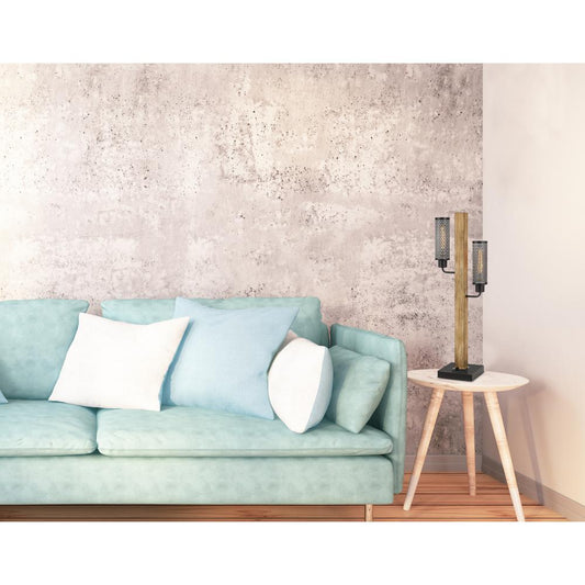 60W X 2 Lenox Lantern Style Rubber Wood / Metal... 60W X 2 Lenox Lantern Style Rubber Wood / Metal Table Lamp With Mesh Metal Shades By Cal Lighting