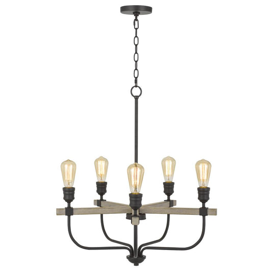 60W X 5 Martos Metal/Wood Chandelier. (Edison B... 60W X 5 Martos Metal/Wood Chandelier. (Edison Bulbs Included) By Cal Lighting