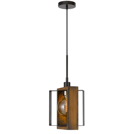 60W Agrigento Pine Wood/Metal Mini Pendant Fixt... 60W Agrigento Pine Wood/Metal Mini Pendant Fixture (Edison Bulb Included), Wood/Black By Cal Lighting