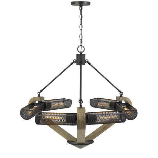 60W X 6 Baden Metal/Wood Chandelier With Mesh S... 60W X 6 Baden Metal/Wood Chandelier With Mesh Shades (Edison Bulbs Are Not Included) By Cal Lighting