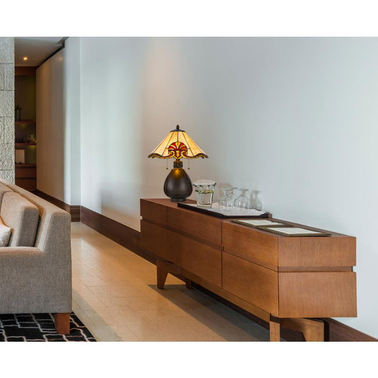 60W X 2 Tiffany Table Lamp With Pull Chain Swit... 60W X 2 Tiffany Table Lamp With Pull Chain Switch With Resin Lamp Body By Cal Lighting