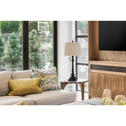 60W X 2 Torrington Resin Table Lamp With Pull C... 60W X 2 Torrington Resin Table Lamp With Pull Chain Switch And Hardback Linen Shade By Cal Lighting