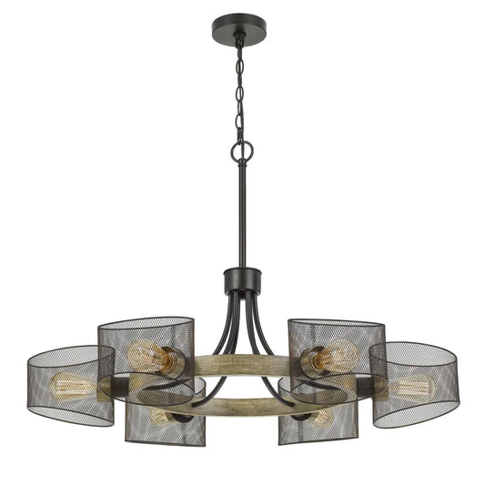 60W X 6 Dronten Metal/Wood Chandelier With Mesh... 60W X 6 Dronten Metal/Wood Chandelier With Mesh Shades (Edison Bulbs Are Not Included) By Cal Lighting
