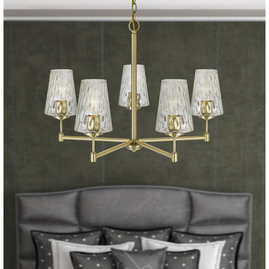 60W X 5 Crestwood Metal Chandelier With Texture... 60W X 5 Crestwood Metal Chandelier With Textured Glass Shades, Antique Brass By Cal Lighting