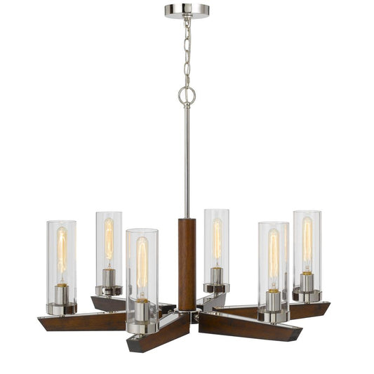 60W X 6 Ercolano Pine Wood/Metal Chandelier Wit... 60W X 6 Ercolano Pine Wood/Metal Chandelier With Clear Glass Shade (Edison Bulbs Not Included), Wood/Brushed Steel By Cal Lighting