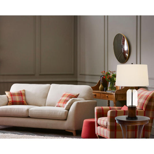 100W Kleve Glass Table Lamp With Taper Drum Har... 100W Kleve Glass Table Lamp With Taper Drum Hardback Linen Shade (Priced And Sold As Pairs) By Cal Lighting