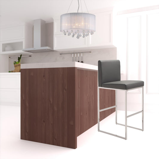 43" Gray Faux Leather And Chrome Low Back Bar H... 43" Gray Faux Leather And Chrome Low Back Bar Height Chair With Footrest By Homeroots