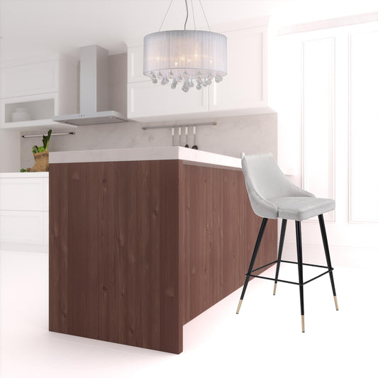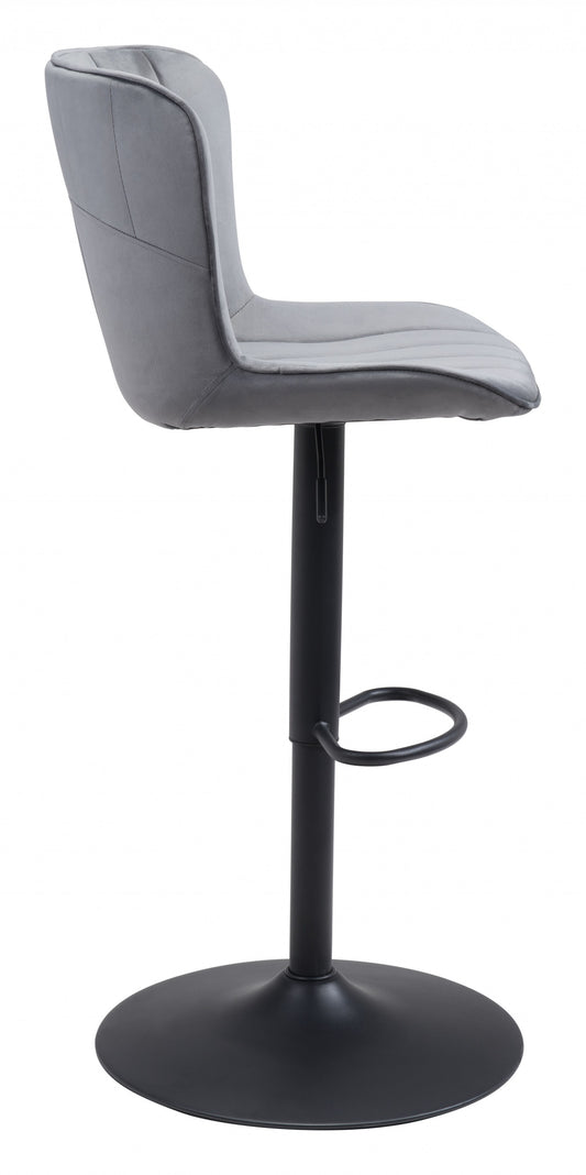 41" Gray Tufted Velvet And Black Bar Height Cha... 41" Gray Tufted Velvet And Black Bar Height Chair With Footrest By Homeroots