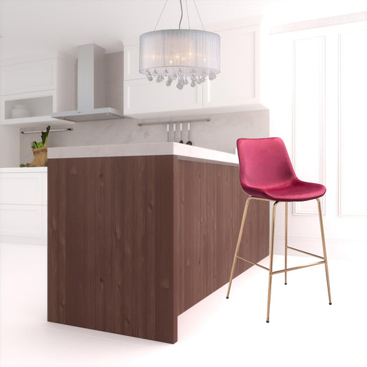 39" Red Velvet And Gold Low Back Counter Height... 39" Red Velvet And Gold Low Back Counter Height Bar Chair With Footrest By Homeroots